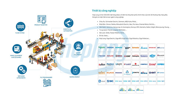 Hợp Long hiện là đối tác phân phối chính thức của hơn 30 thương hiệu hàng đầu thế giới trong lĩnh vực tự động hóa công nghiệp với hơn 500.000 thiết bị có sẵn tại kho: Giga Electrics, Schneider Electric, Siemens, Omron, Delta, Autonics, Ecovacs, Tineco,.... và đặc biệt là nhà phân phối chính hãng của robot UR tại Việt Nam .